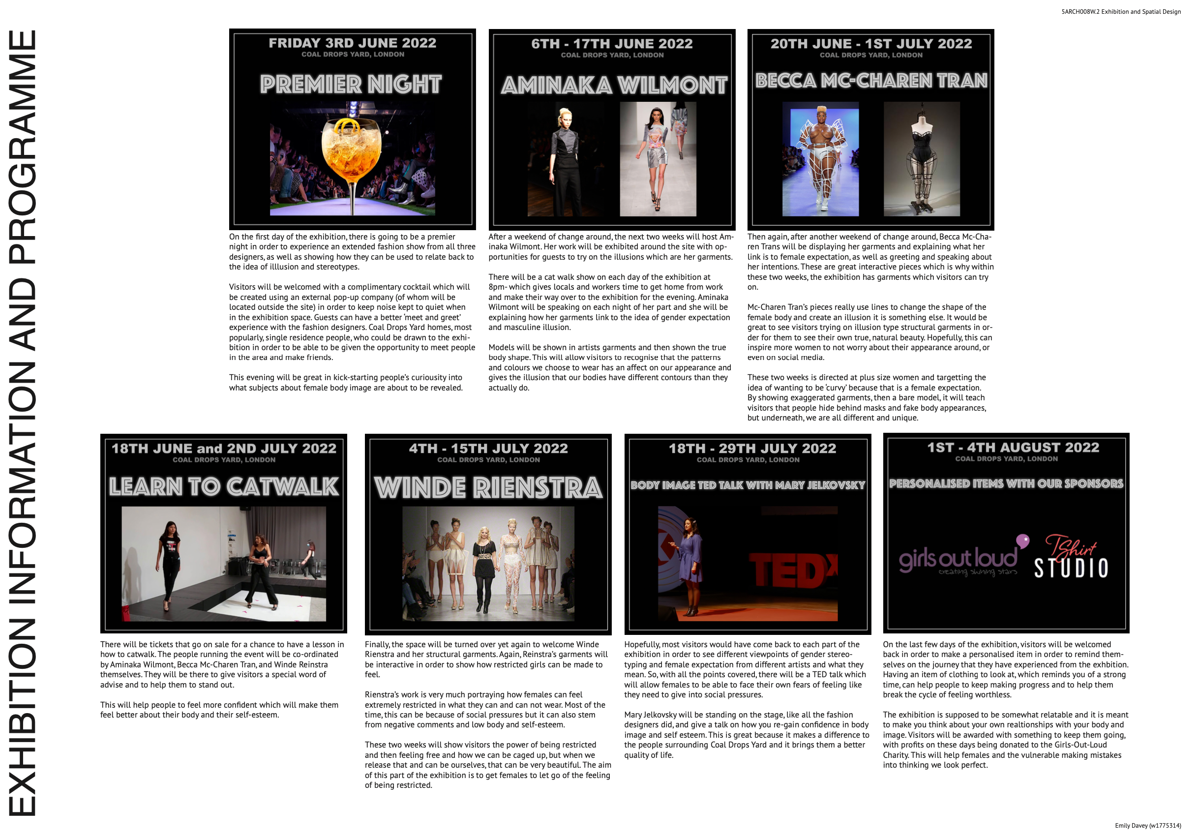 The dates of the exhibition were from the beginning of June to the beginning of August and it needed to include a programme.